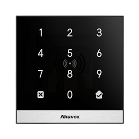 The A02 terminal from Akuvox offers smart, compact access control with multiple authentication options—RFID (13.56 MHz & 125 kHz), NFC mobile access, and touch PIN keypad. It combines a door controller and card reader in one IP-based device. With PoE support, built-in tamper alarm, and rugged IP65-rated aluminum alloy housing, it delivers reliable performance in residential and commercial environments.