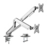 The LDT63-C024 Dual Monitor Arm Mount is an economical choice for adding flexibility and ergonomics to the work place. Durable steel and aluminum construction enables each arm to hold most 17'-32' monitors up to 9kg/19.8lbs (per arm). Finger-tip adjustment allows for effortless maneuvering and a wide range of motion to position screen height and angle. Integrated 180 ° rotation stop prevents the arm from hitting adjacent partitions and walls. A quick-release joint design reduces package size for lower shipping and storage costs while contributing to easy user assembly. The slim and modern design in 2 colors fits most any office or home décor.