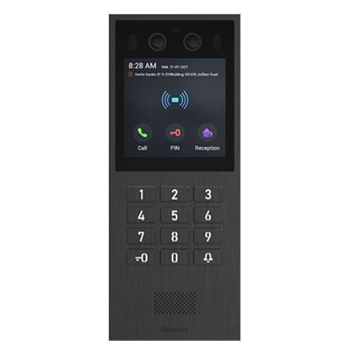 The Akuvox X912K is a rugged SIP door intercom designed for secure, premium installations. It offers multi-modal authentication—AI facial recognition, RFID/NFC cards, Bluetooth BLE, QR code, and PIN keypad. Its vandal-resistant stainless steel body with IK09 and IP65 certification ensures reliable outdoor performance, while the 2MP HDR camera and echo-cancelling speaker support clear audio/video communication. Powered via PoE+ and compliant with SIP and ONVIF standards, the X912K integrates seamlessly with IP PBXs, access systems, and smart building frameworks, making it perfect for apartments, offices, and gated communities.