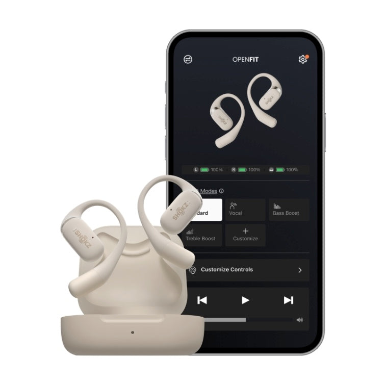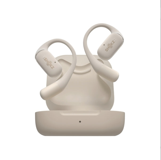 Upgrade your listening experience with the Shokz OpenFit (Beige) — innovative open-ear earbuds that use bone conduction (via DirectPitch™ technology) to deliver immersive audio while keeping your ears free and aware of the world around you. Perfect for outdoor runners, commuters, and multitaskers, these earbuds feature lightweight ergonomic earhooks, long-lasting battery life, and excellent situational awareness — so you can stay safe and connected in style.