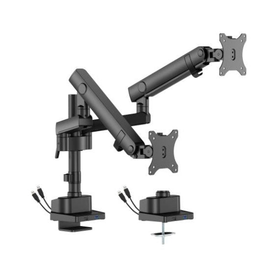 Brateck LDT84-C024UCP-B DUAL SCREEN POLE-MOUNTED HEAVY-DUTY MECHANICAL SPRING MONITOR ARM WITH USB PORTS BLACK (LS)