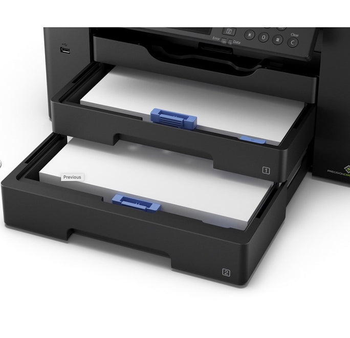 The Epson WorkForce WF-7845 is a versatile A3 colour multifunction printer (MFP) designed for home offices and small businesses that need wide-format printing with flexible functionality. With print, copy, scan, and fax capabilities, automatic duplex printing, and robust paper handling, the WF-7845 easily tackles everyday office tasks. Powered by PrecisionCore Heat-Free Technology, it delivers sharp text and vibrant colour output while offering wireless and mobile printing for ultimate convenience.