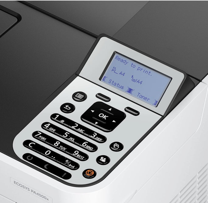 The Kyocera PA4500x is a powerful A4 monochrome laser printer designed for fast-paced business environments that require reliable, high-speed black-and-white printing. With print speeds up to 45 pages per minute, automatic duplex printing, and robust security features, it ensures smooth and secure document handling for small to mid-sized workgroups. Kyocera’s long-life components help minimize maintenance and lower total cost of ownership, making it a smart choice for business productivity.