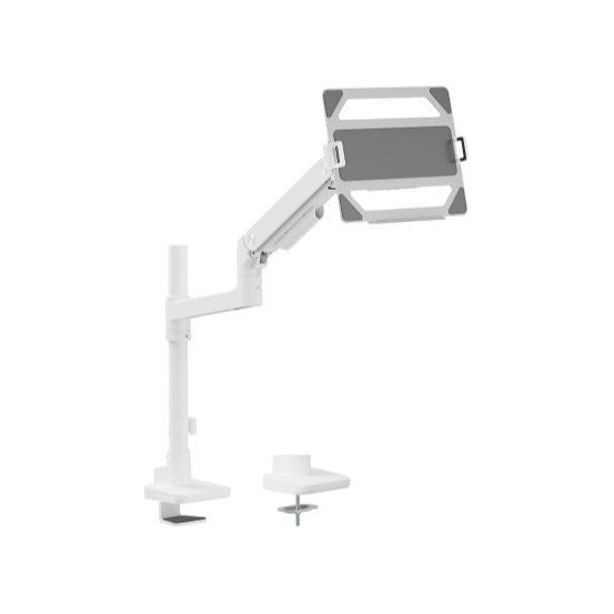 Brateck LDT81-C012P-ML-W POLE-MOUNTED HEAVY-DUTY GAS SPRING MONITOR ARM WITH LAPTOP HOLDER For most 17'~49' Monitors, Fine Texture White (LS)