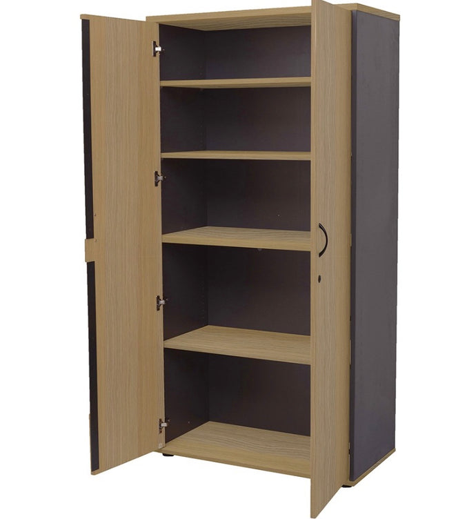 The Rapidline Rapid Worker Lockable Cupboard provides secure and spacious office storage with a modern professional appearance. Featuring a durable E0-rated melamine board with an attractive oak and ironstone finish, this tall cupboard is ideal for safely storing documents, office supplies, stationery, or personal items.