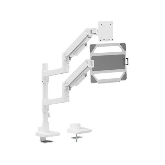 Brateck LDT81-C024P-ML-W NOTEWORTHY POLE-MOUNTED HEAVY-DUTY GAS SPRING DUAL MONITOR ARM WITH LAPTOP HOLDER Fit Most 17'-49' Monitor Fine Texture White