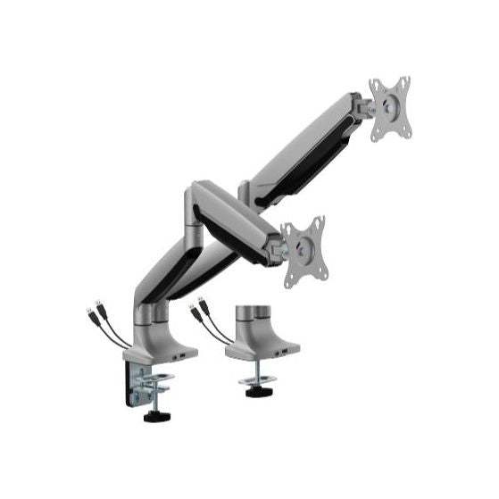BrateckLDT82-C024UCE DUAL SCREEN HEAVY-DUTY MECHANICAL SPRING MONITOR ARM WITH USB PORTS For most 17'~35' Monitors, Matte Silver(LS)