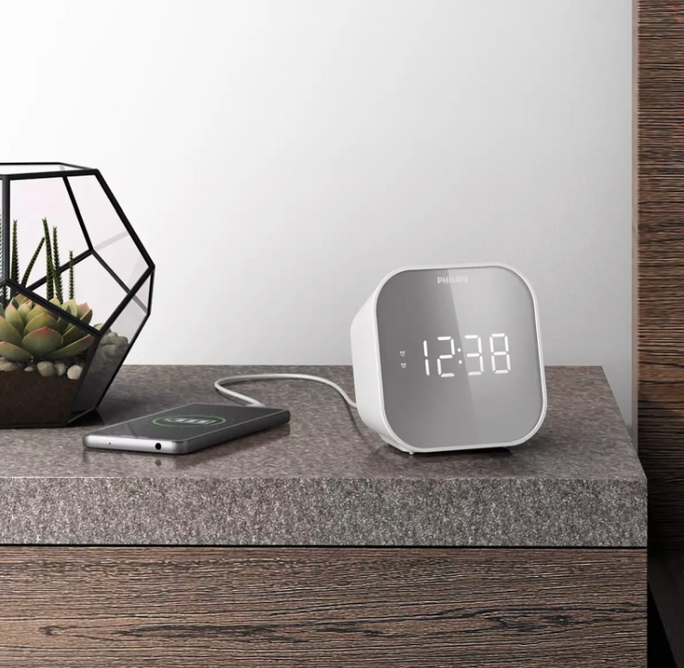 Start your mornings smarter with the Philips Clock Radio with USB Charging. Designed for both function and convenience, this bedside radio features FM/DAB+ digital tuning, dual alarms, and a built-in USB port so you can charge your smartphone overnight.
